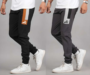 Elevate your casual style with our Men's Lycra Contrast Panel Jogger Combo, featuring two pairs of joggers designed for comfort and versatility. Made from a high-quality lycra blend, these joggers offer a soft and stretchy fit that allows for ease of movement, making them perfect for workouts, lounging, or daily activities.
